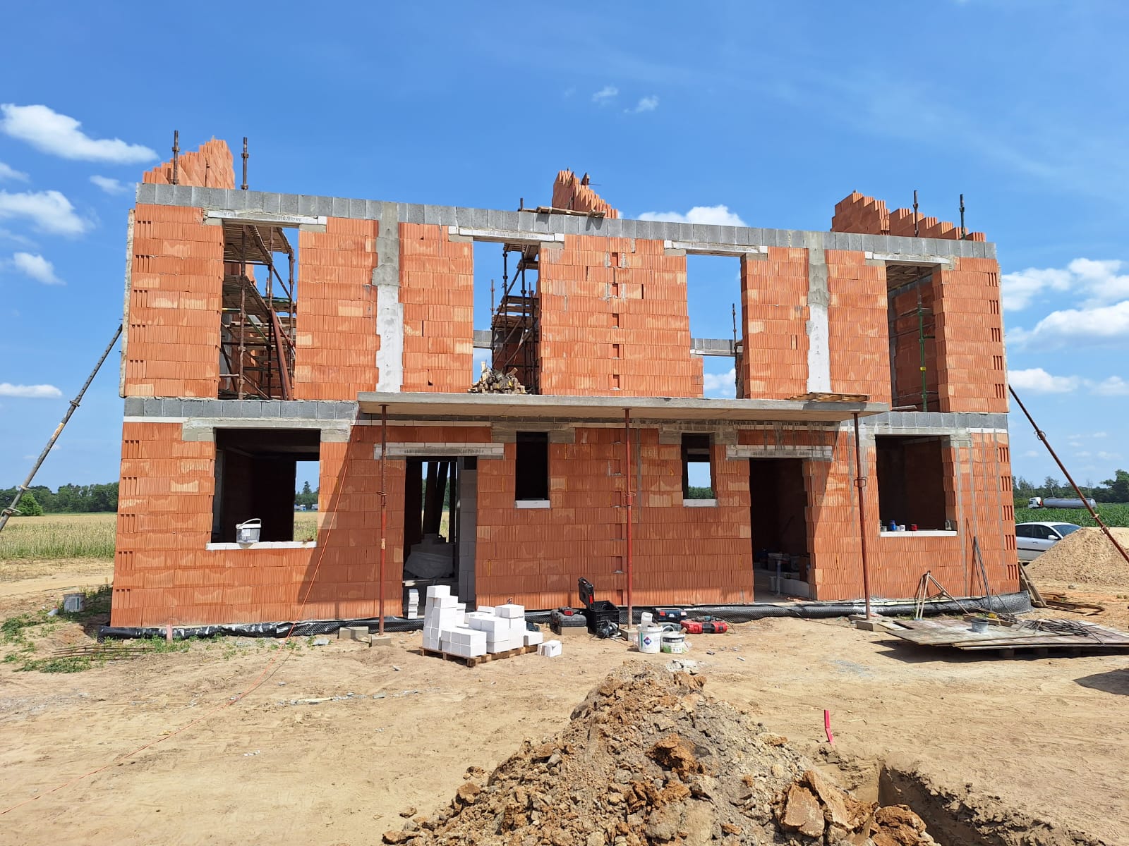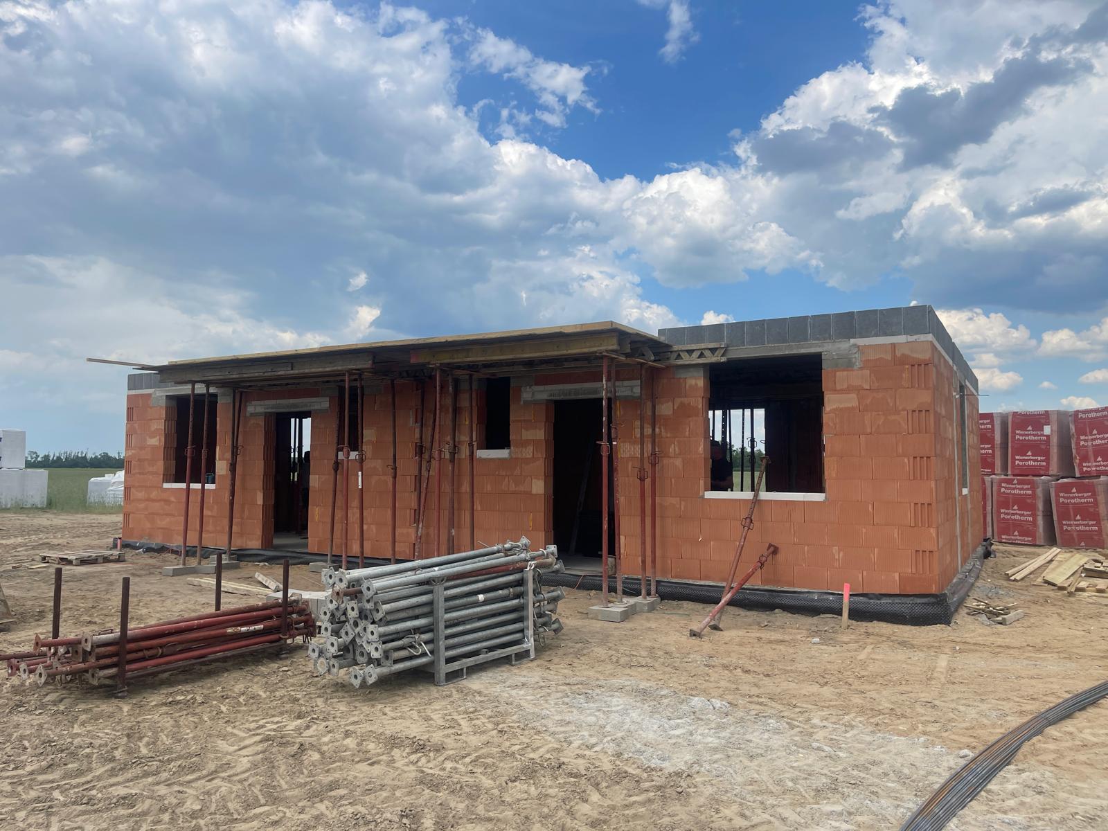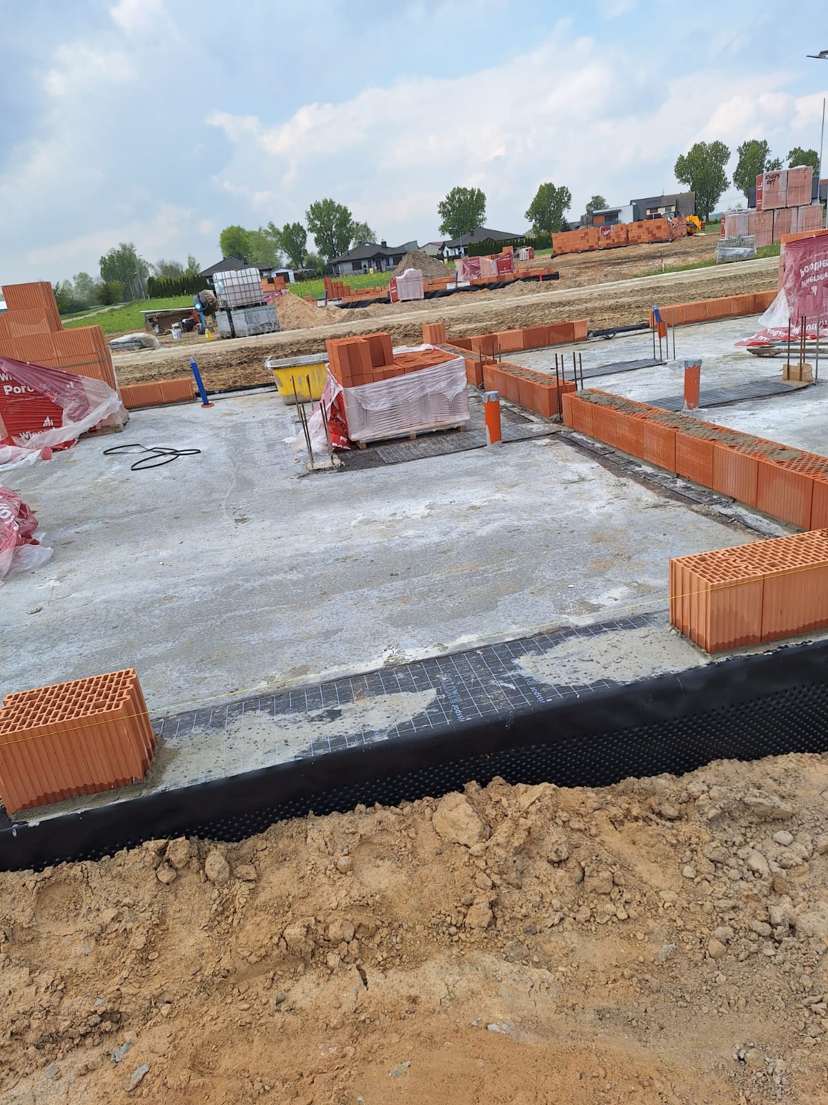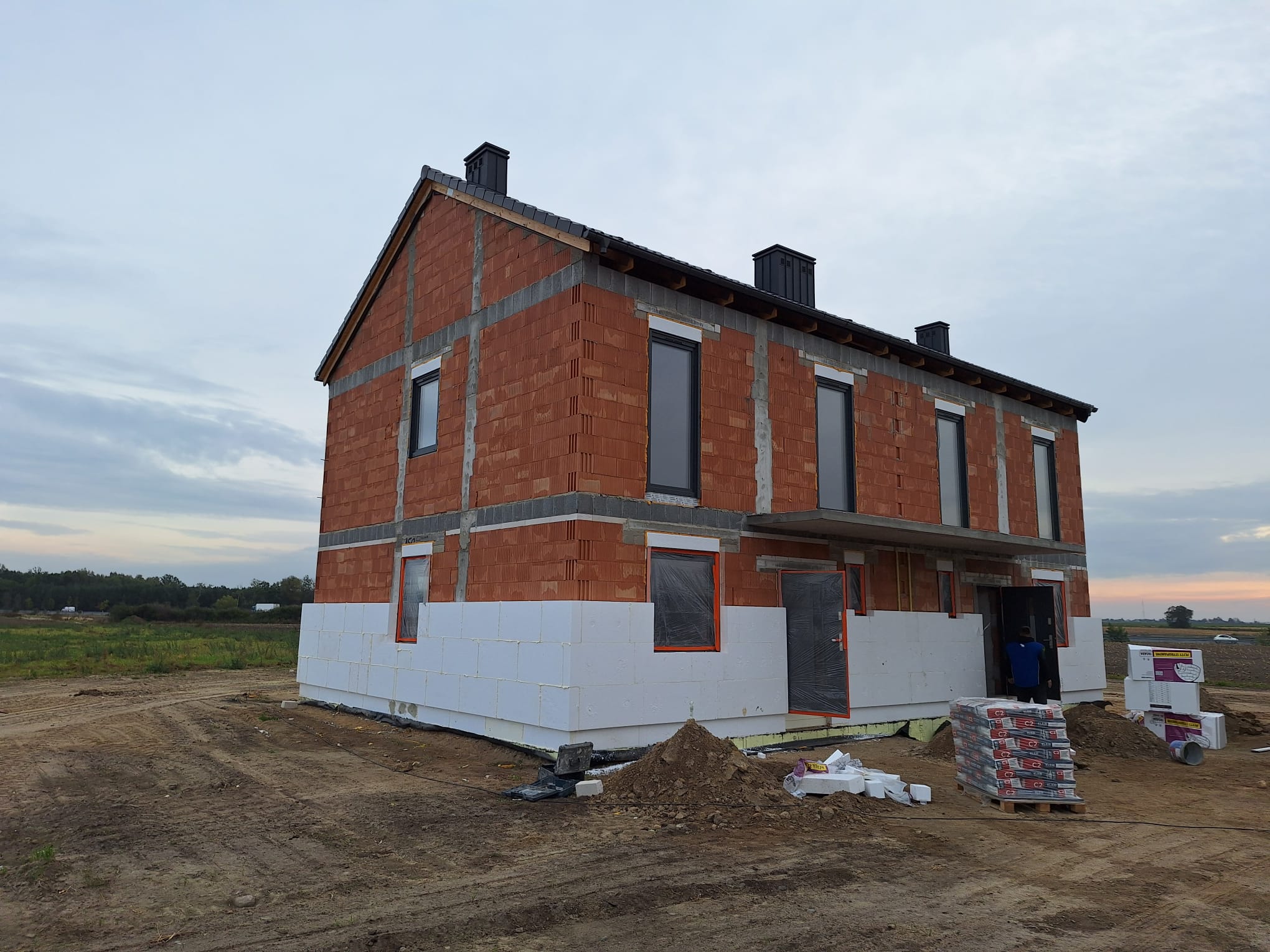- parteru i piętra: bloczki z pustaka ceramicznego Porotherm 24 cm, ocieplone styropianem o grubości 15 cm