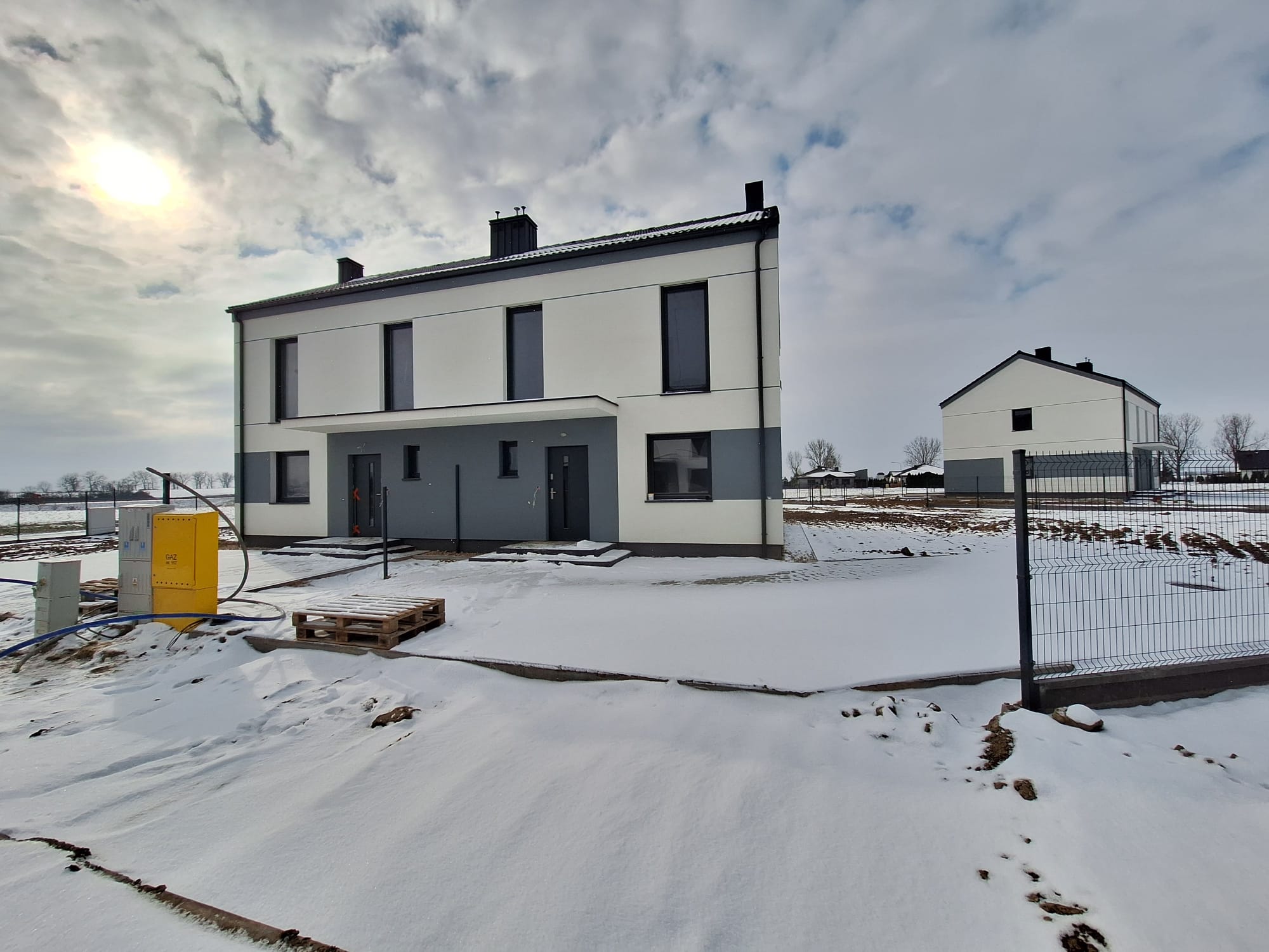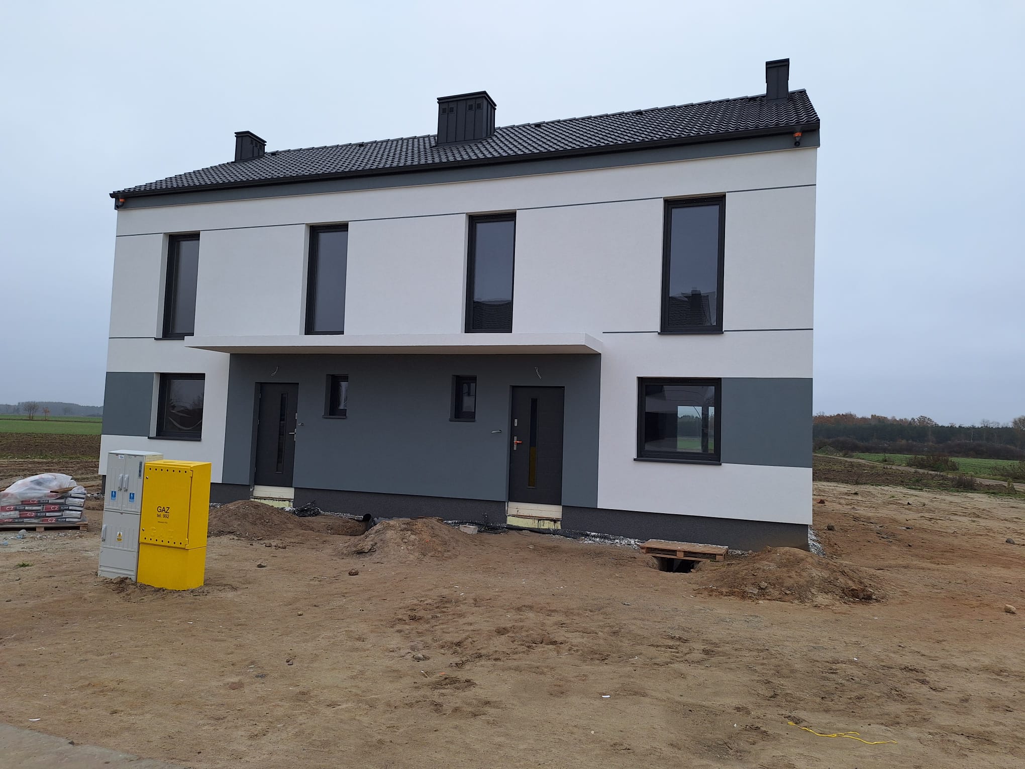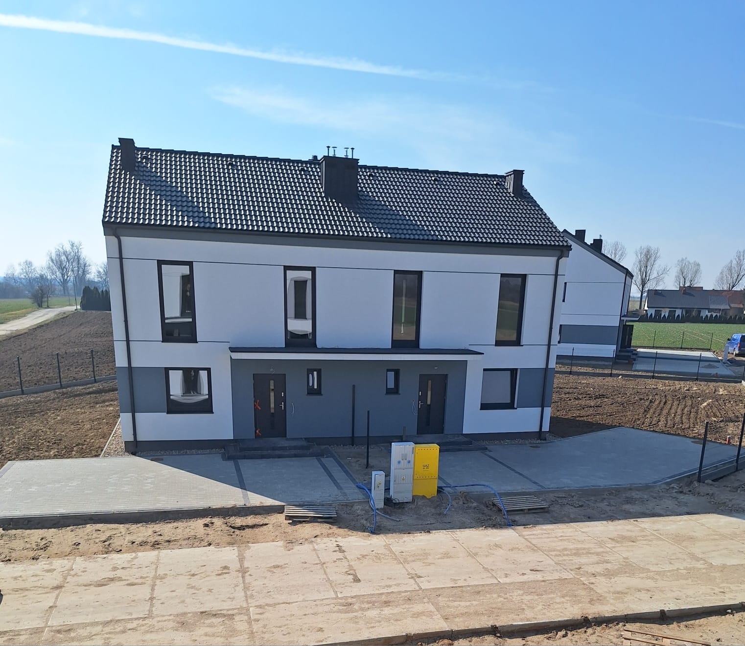 – przyłącze gazowe doprowadzone z granicy działki (skrzynki) do pieca gazowego (zawór na budynku)